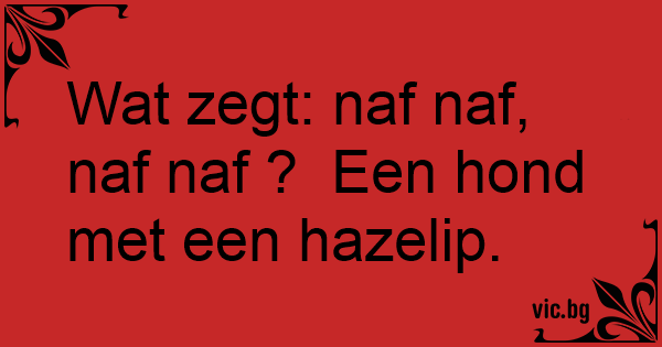 Wat zegt: naf naf, naf naf ? Een hond met een hazelip.