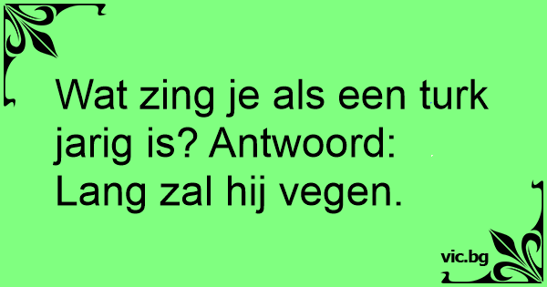 Wat zing je als een turk jarig is? Antwoord: Lang zal hij vegen.