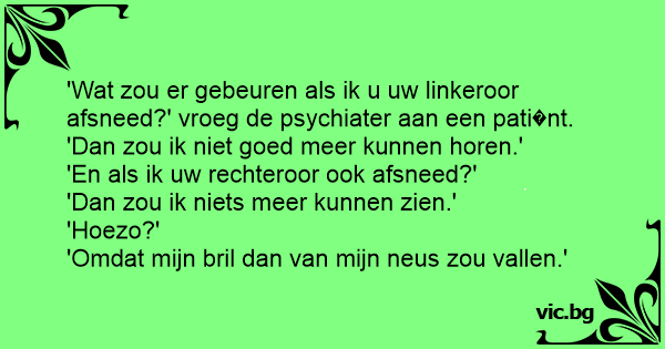 'Wat zou er gebeuren als ik u uw linkeroor afsneed?' vroeg de psychiater aan een pati�nt.