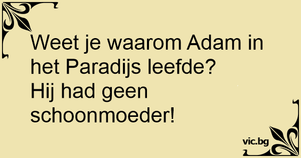 Den lilla pojken till sin far : “pappa, vad hette Adams svärmor egentligen?” – Pappan: “Han hade ingen svärmor. Du kommer väl ihåg att han bodde i ett paradis!”