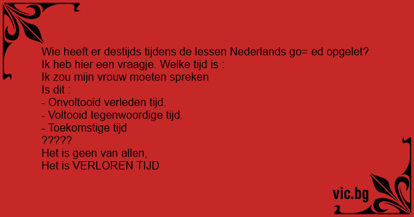 Wie heeft er destijds tijdens de lessen Nederlands go= ed opgelet? Ik heb hier een vraagje. Welke tijd is :