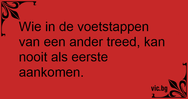 Wie in de voetstappen van een ander treed, kan nooit als eerste aankomen.