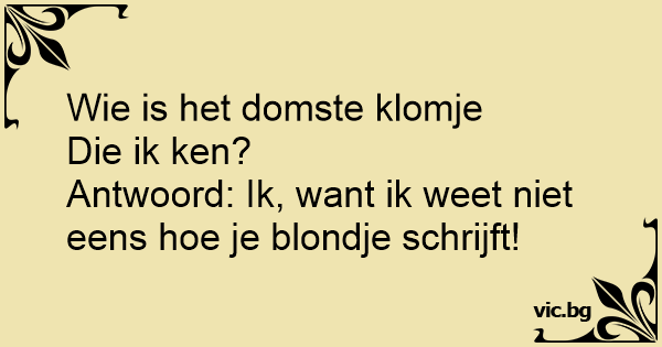 Antwoord: Ik, want ik weet niet eens hое je blondje schrijft!