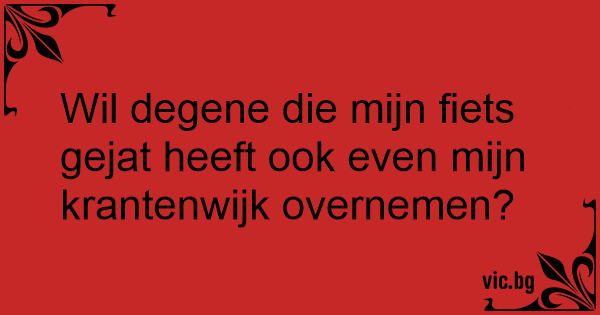 Wil degene die mijn fiets gejat heeft ook even mijn krantenwijk overnemen?