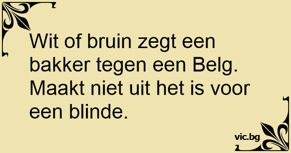 Wit of bruin zegt een bakker tegen een Belg. Maakt niet uit het is voor een blinde.