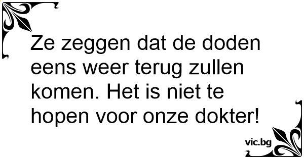 Ze zeggen dat de doden eens weer terug zullen komen. Het is niet te hopen voor onze dokter!