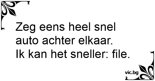 Zeg eens heel snel auto achter elkaar.