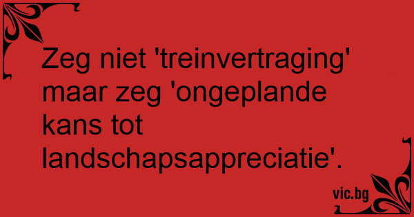 Zeg niet 'treinvertraging' maar zeg 'ongeplande kans tot landschapsappreciatie'.