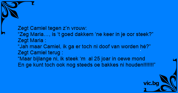 “Zeg Maria…, is ‘t goed dakkem ‘ne keer in je oor steek?”