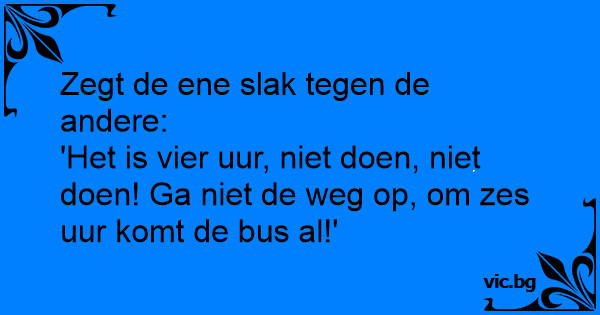 Zegt de ene slak tegen de andere: