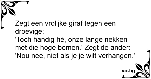 Zegt een vrolijke giraf tegen een droevige: