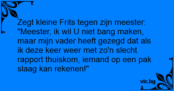"Meester, ik wil U niet ваng maken, maar mijn vader heeft gezegd dat als ik deze keer weer met zo'n slecht rapport thuiskom, iemand op een pak slaag kan rekenen!"