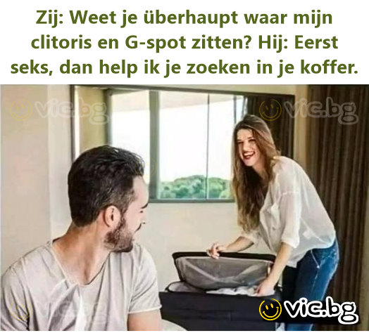 Тя: Знаеш ли изобщо къде ми е клиторът и G-точката? Той: Първо да правим cekc, после ще търсим в куфара.