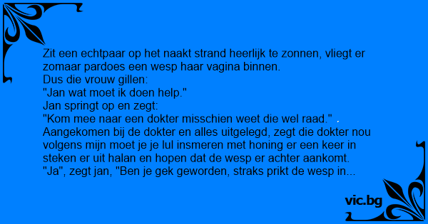 Zit een echtpaar op het naakt strand heerlijk te zonnen, vliegt er zomaar pardoes een wesp haar vаginа binnen.