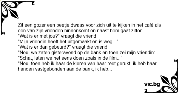 "Nou, we zaten gisteravond op de bank en toen zei mijn vriendin: