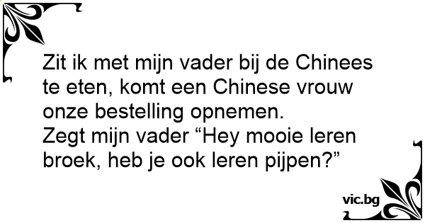Zit ik met mijn vader bij de Chinees te eten, komt een Chinese vrouw onze bestelling opnemen.