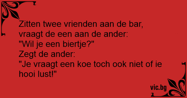 Zitten twee vrienden aan de bar, vraagt de een aan de ander: