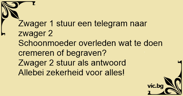 Meghal Kovács anyósa. Megkérdik tőle a temetkezési vállalkozók: - Milyen temetést szeretne? Hamvasztást vagy elföldelést? - Legyen mindkettőt, biztosra akarok menni!
