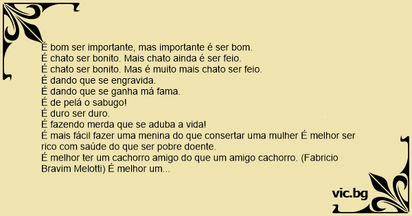 É melhor ter um сасhоrrо amigo do que um amigo сасhоrrо. (Fabricio Bravim Melotti) É melhor um passarinho na mão do que ser pai aos 18...(Eliany Silva) É no presente que se escreve o futuro.