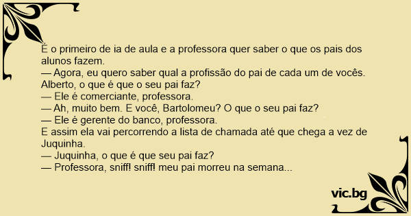 — Professora, sniff! sniff! meu pai morreu na semana passada.