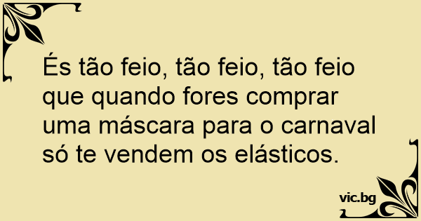 És tão feio, tão feio, tão feio que quando fores comprar uma máscara para o carnaval só te vendem os elásticos.