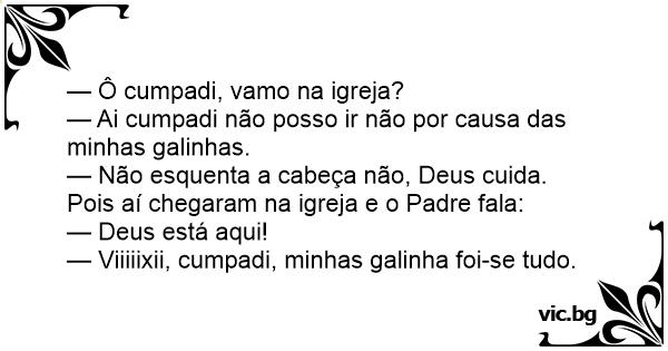 — Ai cumpadi não posso ir não por causa das minhas galinhas.