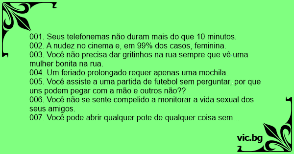 079. Você pode coçar o saco. 080. Um arroto seguido de um desculpe, se vindo de você não é tão grave.