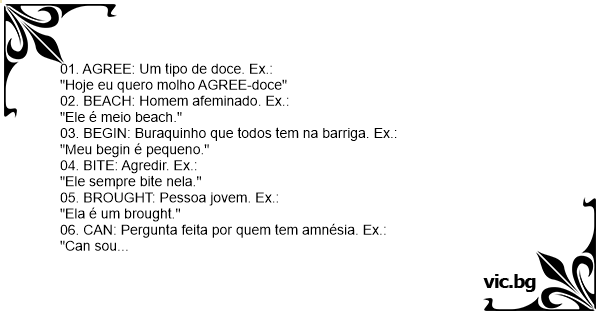 01. AGREE: Um tipo de doce. Ex.: