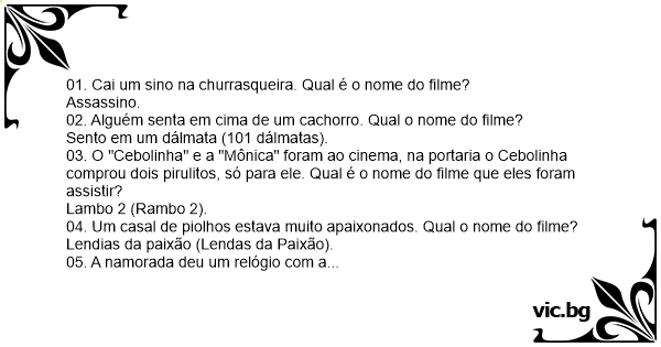 01. Cai um sino na churrasqueira. Qual é o nome do filme?