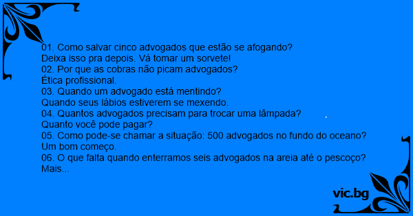 05. Como pode-se chamar a situação: 500 advogados no fundo do oceano?