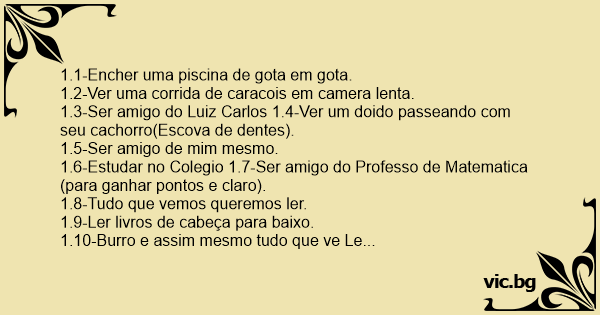 1.3-Ser amigo do Luiz Carlos 1.4-Ver um doido passeando com seu сасhоrrо(Escova de dentes).