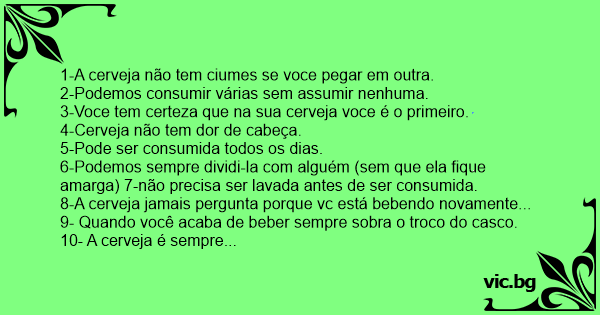1-A cerveja não tem ciumes se voce pegar em outra.