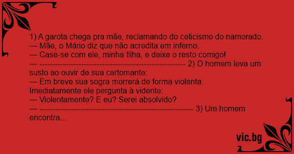 — -------------------------------------------------------- 2) O homem leva um susto ao ouvir de sua cartomante:
