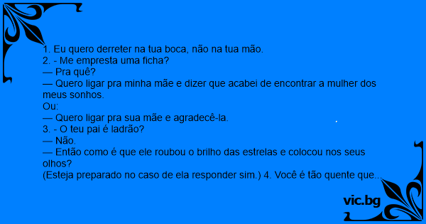 (Esteja preparado no caso de ela responder sim.) 4. Você é tão quente que chega a derreter o plástico da minha cueca.