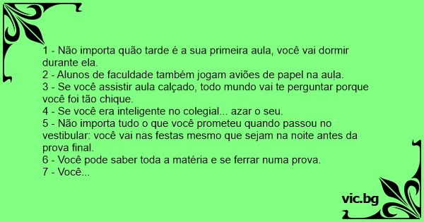 1 - Não importa quão tarde é a sua primeira aula, você vai dormir durante ela.
