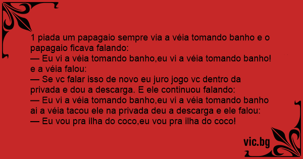 1 piada um papagaio sempre via a véia tomando banho e o papagaio ficava falando: