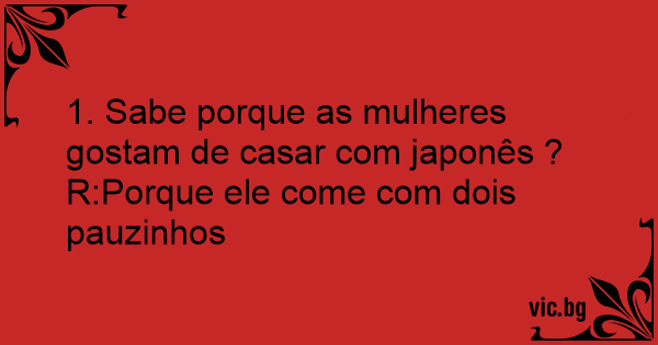 1. Sabe porque as mulheres gostam de casar com japonês ?