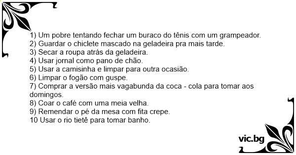 10 Usar o rio tietê para tomar banho.