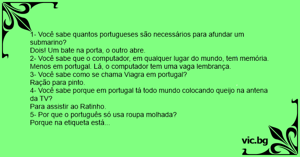 1- Você sabe quantos portugueses são necessários para afundar um submarino?