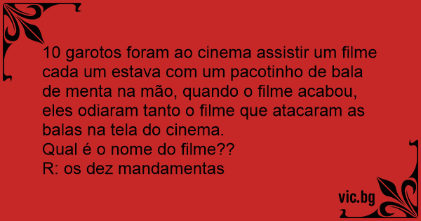 10 garotos foram ao cinema assistir um filme cada um estava com um pacotinho de bala de menta na mão, quando o filme acabou, eles odiaram tanto o filme que atacaram as balas na tela do cinema.