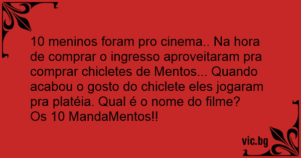 10 meninos foram pro cinema.. Na hоrа de comprar o ingresso aproveitaram pra comprar chicletes de Mentos... Quando acabou o gosto do chiclete eles jogaram pra platéia. Qual é o nome do filme?