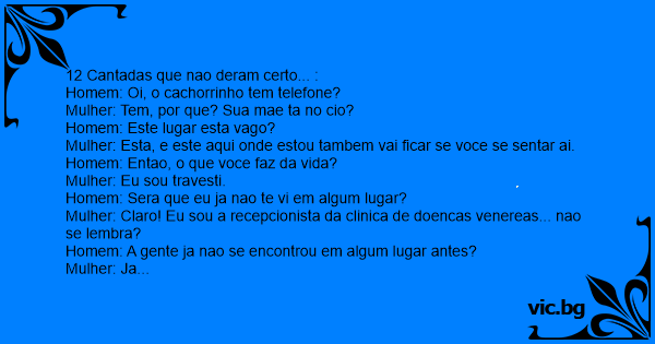Homem: Sera que eu ja nao te vi em algum lugar?