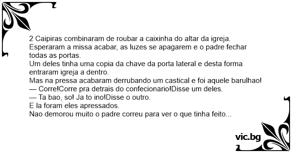 2 Caipiras combinaram de roubar a caixinha do altar da igreja.