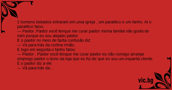 2 homens bebados entraram em uma igreja , um paralitico e um fanho. Ai o paralitico falou: