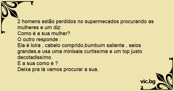 2 homens estão perdidos no supermecados procurando as mulheres e um diz: