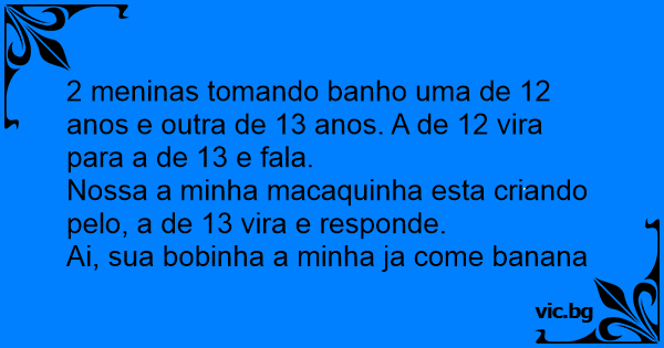 2 meninas tomando banho uma de 12 anos e outra de 13 anos. A de 12 vira para a de 13 e fala.