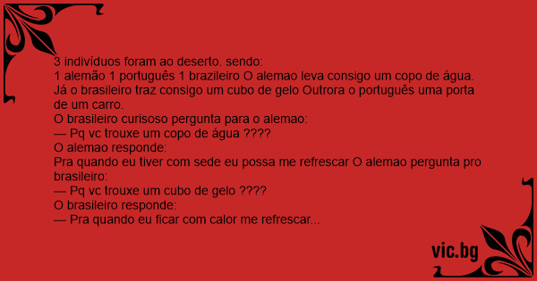 — Pra quando eu ficar com calor me refrescar Ai o alemao e o brasileiro perguntaram pro português: