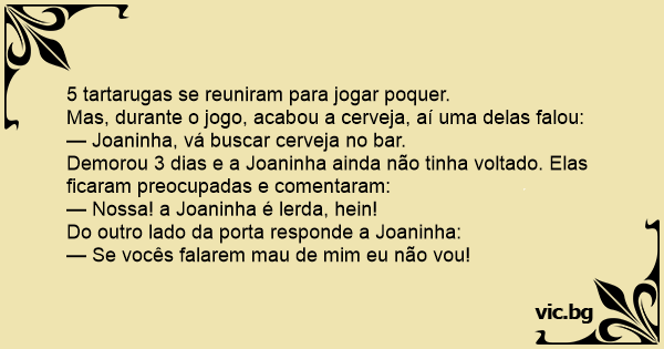 5 tartarugas se reuniram para jogar poquer.