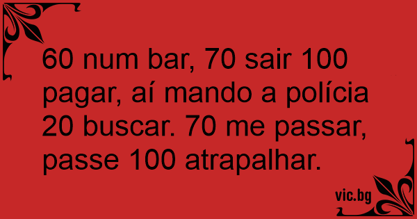 60 num bar, 70 sair 100 pagar, aí mando a polícia 20 buscar. 70 me passar, passe 100 atrapalhar.