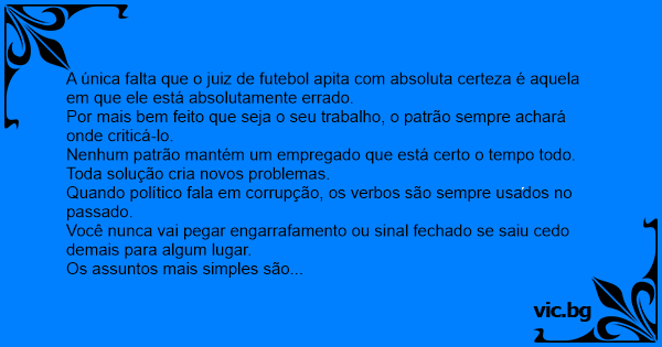 A única falta que o juiz de futebol apita com absoluta certeza é aquela em que ele está absolutamente errado.
